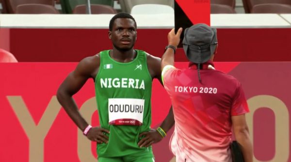 Nigeria’s Olympic dreams suffered another major blow after Divine Oduduru, due to a false start was disqualified from the heat 5 of the men’s 100m event.