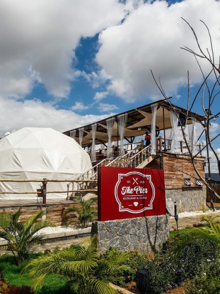 The grounds here are a feast for the eyes. You may see Ducks wading around or in the mini pond behind the well-placed gravel stones within the premises. The most attractive part of The Pier is the translucent dome. When decorated to perfection, it looks amazing. It becomes an ideal place for parties and wedding proposals. At night the lights make the whole environment look dreamy.