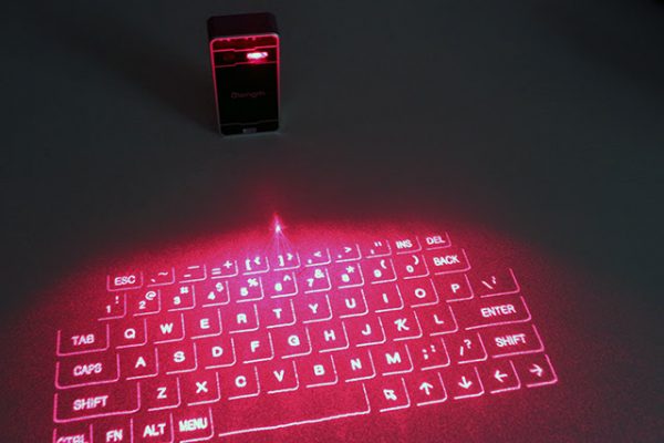 The laser projection keyboard is an input device that allows the image of a virtual keyboard to be projected onto a surface for use. This means that instead of typing with a physical keyboard, all keystrokes will be made via the virtual keyboard onto the computer screen. This device also has the unique benefit of being flexible as it connects directly with Bluetooth devices.