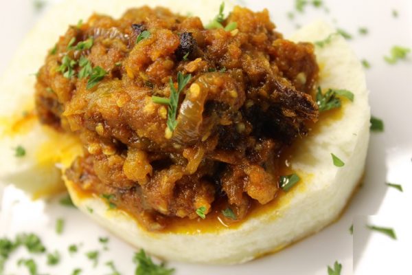 A very popular delicacy in the southern parts of the country, the garden egg sauce can substitute for the tomato stew any day. The basic ingredients needed include: Garden eggs (either purple “aubergine”, white or green), palm oil, smoked fish, ground pepper (either chilli or scotch bonnet), iru (locust bean seed), onion, crayfish and salt to taste. It can be used to eat rice, yam or plantain.