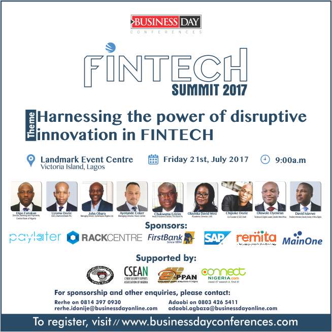 Key stakeholders and regulatory agencies in Nigeria’s financial technology (fintech) landscape are set to chart a new course for the industry at the BusinessDay Fintech Summit 2017. The event which will hold on the 21st of July, 2017 is themed