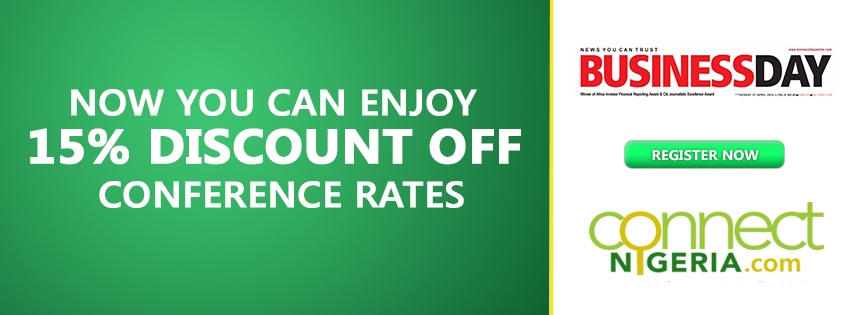 BusinessDay, Nigeria’s foremost business newspaper has partnered with ConnectNigeria.com, Nigeria’s leading search portal to offer you a 15% discount on your next BusinessDay conference. This partnership benefits all ConnectNigeria.com’ s registered users, for all BusinessDay’ s high level conferences advertised