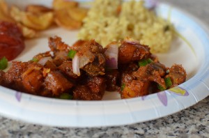 Like this stewed gizzards, and fried plantain (Dodo) dish,  served as a small chop. As an hor d’oeuvre, the apparently essential marriage of two separate dishes – stewed gizzards and Dodo. Joined in holy matrimony once cooked by tossing together. To live happy thereafter.