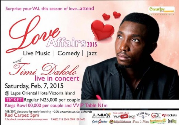 This Valentine, Lagos will witness electrifying performances as vocalist Timi Dakolo, fast rising artiste Kiss Daniel, saxophonist icon LaBanj and others come together for the very first edition of Love Affairs. This prestigious event will take place at The Oriental