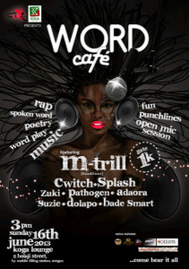 Word Cafe, a spoken word, poetry and music event presented by Pixie Dust PR in conjunction with Koga Lounge will be held this weekend.