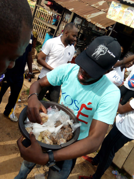 In order to achieve the above objective of reaching out to the target group, Jason has an initiative called Gobe Zamu Ci Kose- meaning, ‘Tomorrow, we will eat Kose (Akara)’. This initiative allows Jason to strategically find any Kose (Akara seller) around his vicinity and purchase everything on her selling tray or table with just one buy. {Emphasis: EVERYTHING!}. This is possible because He mobilizes his friends and other well-wishers to come partake of this act. But it doesn’t stop there, Jason and his group of friends/well-wishers donate food items and cash to the target population.