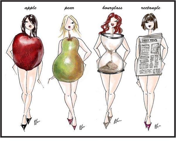 As you may or may not know, there are four standard body types: Apple, Rectangle, Pear and Hourglass.