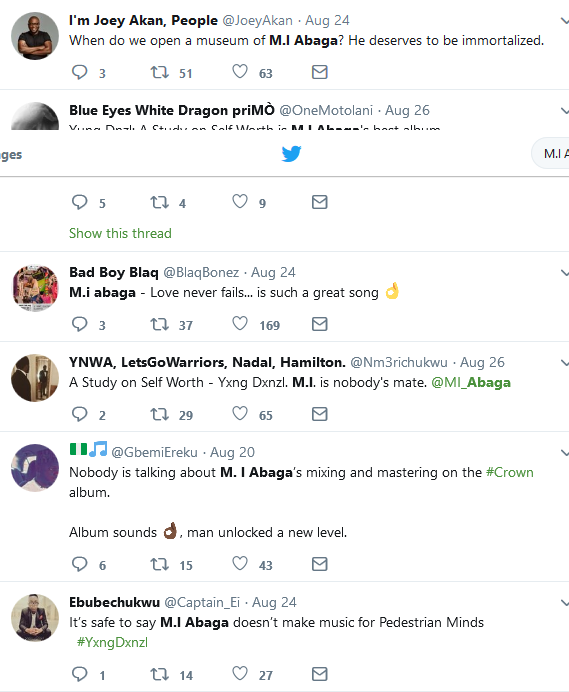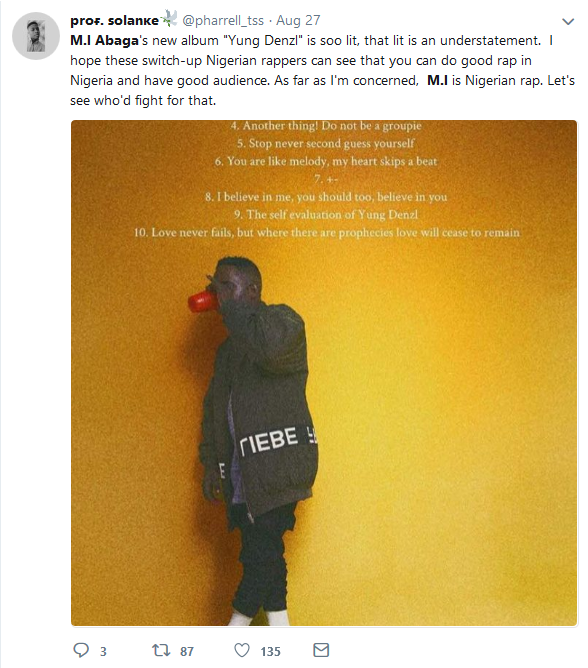 Rapper and Chocolate City boss, M.I’s fifth studio album titled ‘Yxng Dxnzl’ is already gaining popularity since its release on Friday night.