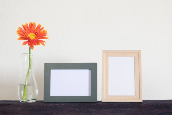 Use two thin wooden slats of about an inch or ¼ to ½ inches, depending on the width of your picture. You can get from a carpenter or a woodwork shop next to you. Painting the woods is totally up to you.