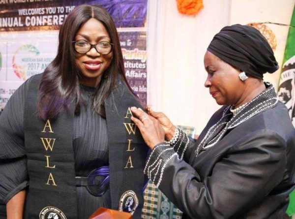 Mrs Bolanle Ambode, the wife of Lagos State Governor was decorated as the matron and mother of The African Child. This occurred at the African Women Lawyers Association parley, held at Victoria Island, Lagos. This is part of the activities organised to celebrate the annual general meeting of the Nigerian Bar Association.
