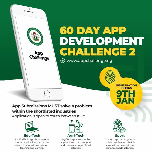 The Federal Ministry of Youth and Sports Development, in collaboration with the Bank of Industry (BOI), is organizing the Sixty-Day App Development Challenge. The program, which is designed for young Nigerian app developers, will identify and reward persons who