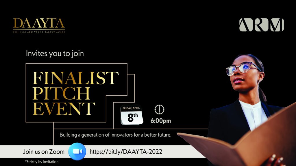 ARM has announced that the 2022 edition of the Deji Alli ARM Young Talent Award (DAAYTA) finalists pitch event will hold virtually on April 8th, 2022. This is the fourth edition since the pilot run in 2015. The past