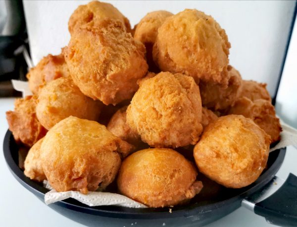 If the batter rises too quickly, ย know that the oil is too hot. Turn off the heat. Allow the oil to cool a bit. ย Once the oil is ready, make balls from the batter and drop them into the oil.