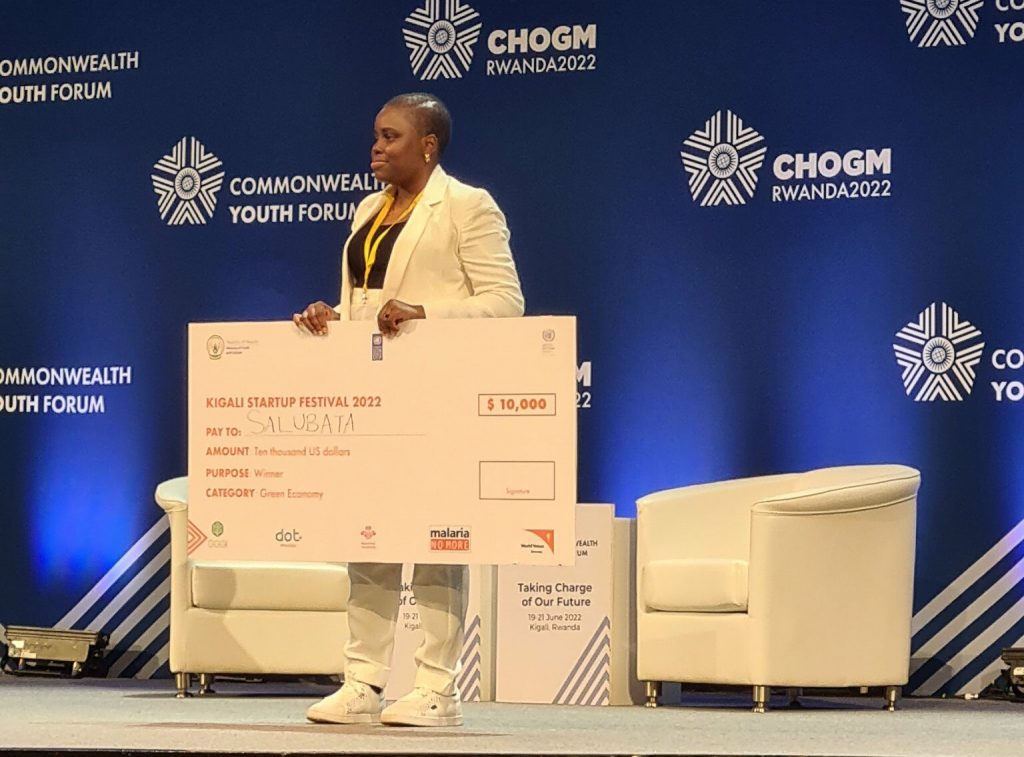 Salubata reforms plastic wastes. Nigerian start-up, Salubata Technologies, won a cash sum of $10,000 (about N4.2 million) at the Kigali Startup Festival 2022 of the Commonwealth Youth Forum (CYF) in Kigali, Rwanda. The Nigerian enterprise got the prize money after