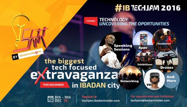 Techjam, a 2-day conference and exhibition, would be holding at Ibadan, Oyo State, from the 8th to 9th of December, 2016. The conference is an opportunity for individuals and organizations to learn how to maximize the opportunities available with technology.