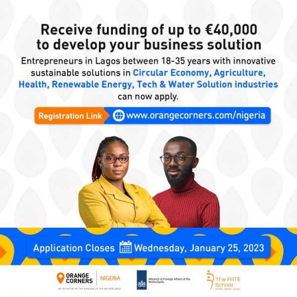 Applications are currently open for the Orange Corners Nigeria Incubation Program. This program is aimed at entrepreneurs and is designed to provide them with the skills, access to markets, and funding they need to succeed with their ventures.