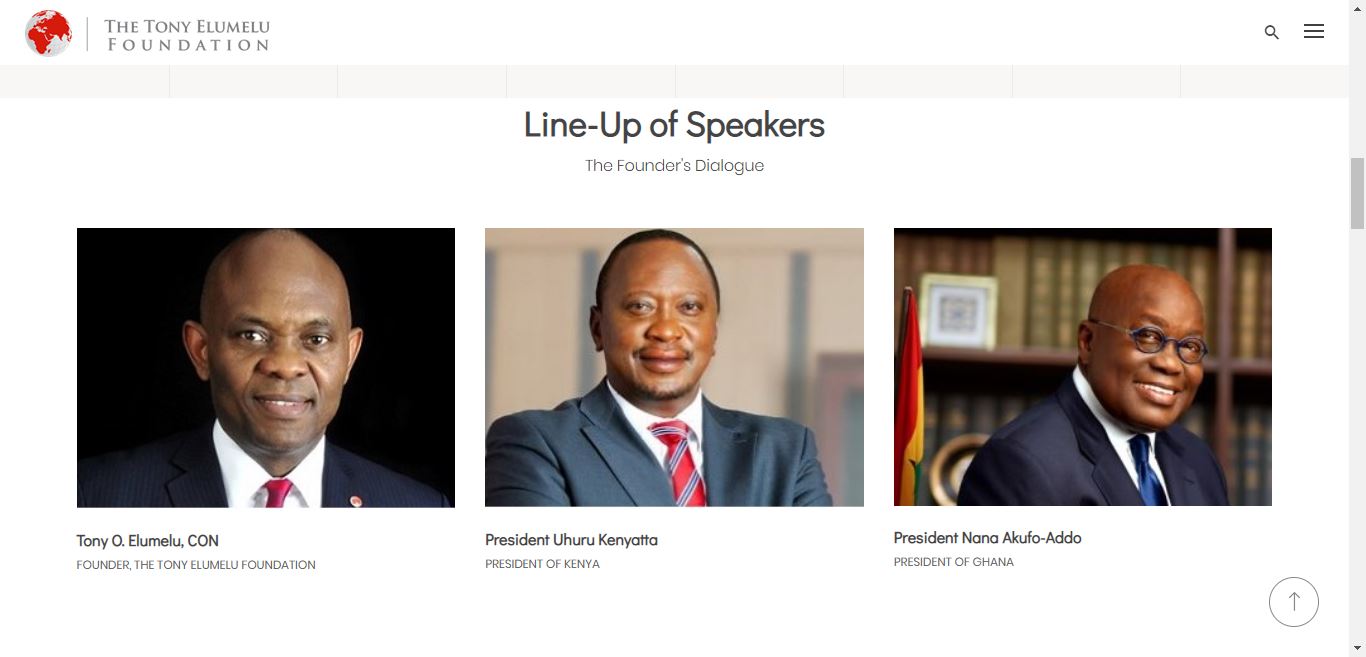 At this time, attendees will have an opportunity to engage in an interactive session with President Uhuru Kenyatta of Kenya and President Nana Akufo-Addo of Ghana, anchored by TEF founder, Tony Elumelu.