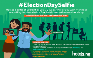 Photographs taken must be uploaded on Instagram, Twitter or Facebook with the hashtags #ElectionDaySelfie and #Hotelsng. The most interesting and dramatic photos will win these lovely prizes.